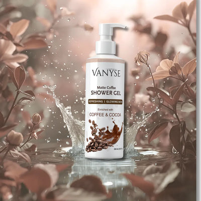Vanyse Coffee & Cocoa Shower Gel, a refreshing body wash for glowing skin enriched with real coffee and cocoa extracts. Specially designed for men and women, this sulfate-free and paraben-free shower gel deeply cleanses dirt, sweat, and excess oil while nourishing and hydrating your skin.
